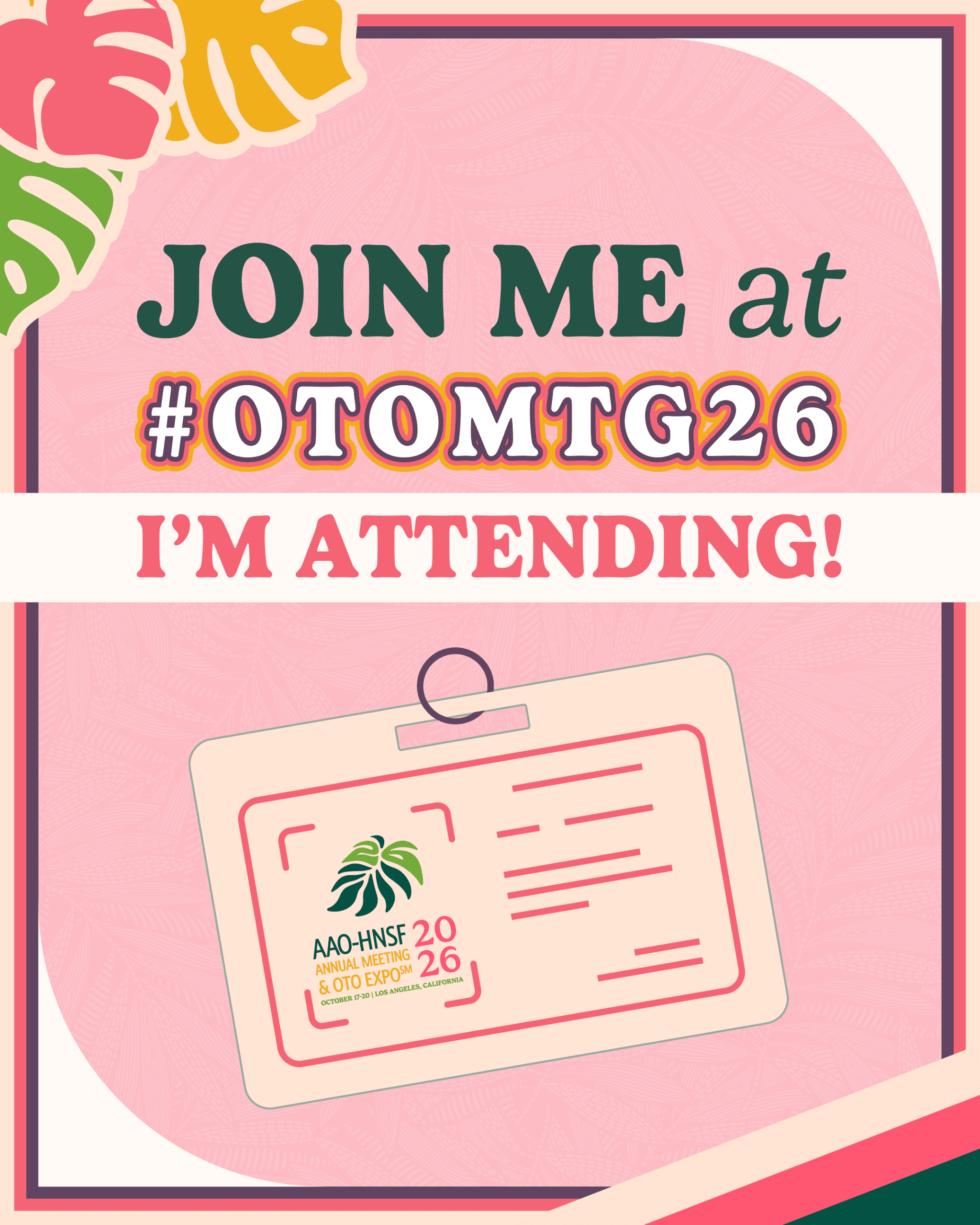 Promote your #OTOMTG26 session and position yourself as a thought leader in the specialty. Use our ready-to-share speaker graphic and sample posts to showcase your expertise, build visibility, and help drive engagement with the Annual Meeting. Let your network know where to find you this October in LA!