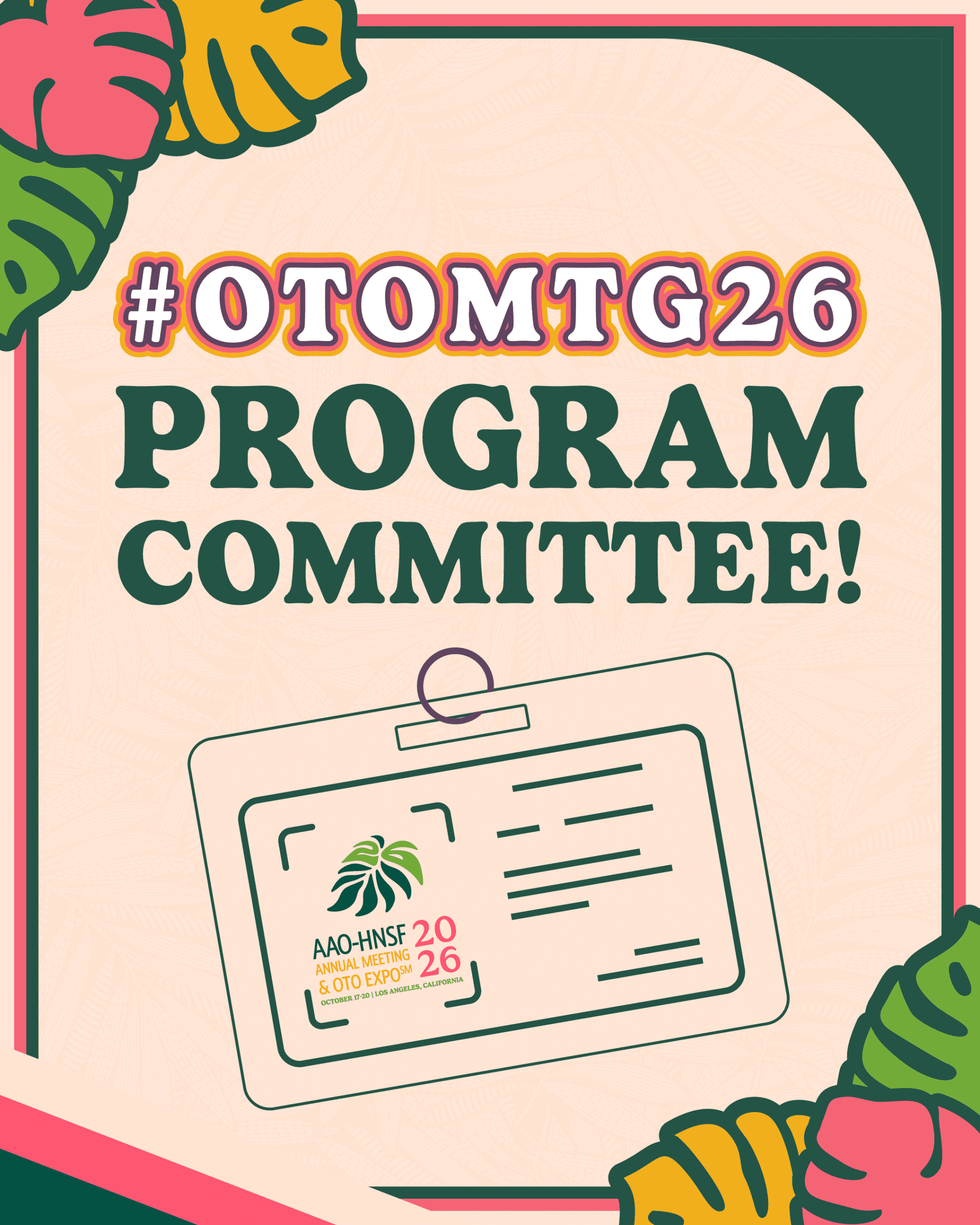 Express your enthusiasm over the #OTOMTG26 program you helped build and position yourself as a thought leader in the specialty. Use our ready-to-share program committee graphic and sample posts to showcase your expertise, build visibility, and help drive engagement with the Annual Meeting. Let your network know where to find you this October in LA!